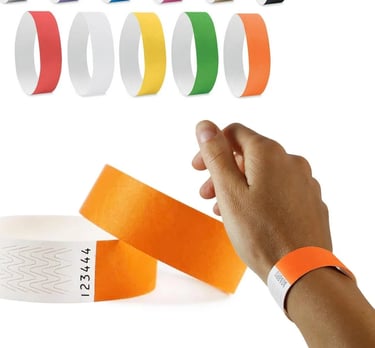 Affordable solid-colour Tyvek bands with optional black print and UV ink.